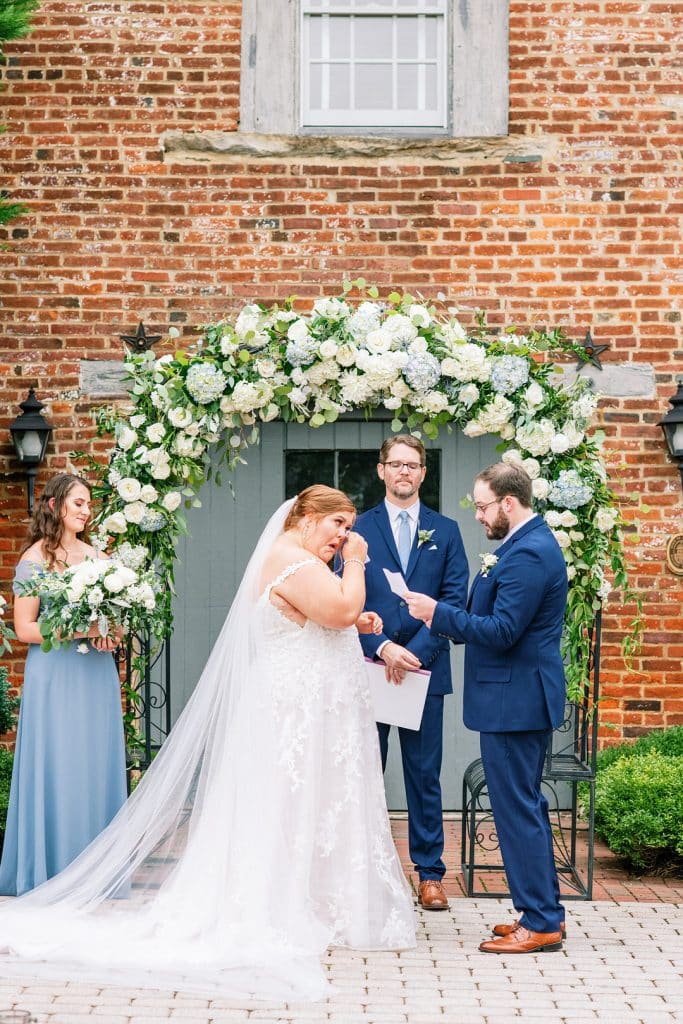 I let my florist take the lead with decorating because I trusted her to make my flowers just stunning, so I didn’t need much decoration beyond that. She took some simple Pinterest pictures I had from years of dreaming about my special day and transformed them into this gorgeous combination of flowers.  She designed a beautiful arbor that was featured behind our ceremony, along with all family portraits.