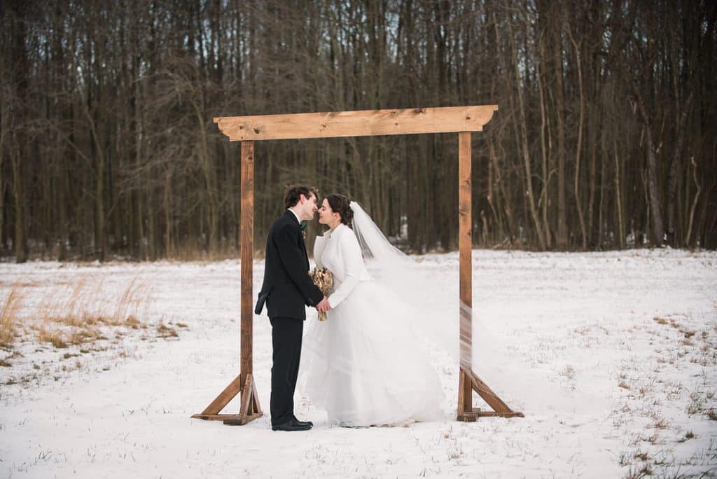 When we heard snow was coming, the owner of Prancing Deer Farm and I put together this intimate styled shoot.  Despite the bitter cold and wind, we had a beautiful styled session with a beautiful newlywed couple!