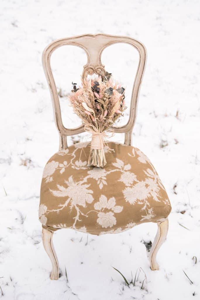 Usually you have a few weeks or even months to plan a styled shoot – we had 4 days.  Because of that, we wanted to keep things very simple – focusing on a minimalist style and allowing the beauty of the snow, tree-lined lane, and golden tall grass to take the spotlight.