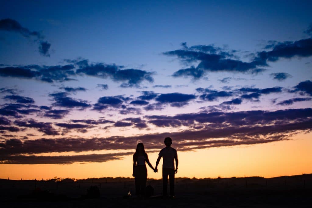 We did a fun and romantic styled shoot with a couple who are dear friends of ours. Andrew is a surfer, and Assateague is a popular surfing destination on the East Coast, so we wanted to include outdoor adventure elements. The beautiful natural light from the golden hour, combined with the dramatic light we used for night portraits, made for a fun, colorful, and edgy session. We also used fun rainbow light and did a double exposure of the stars to create a mysterious “galaxy” image. We love how it turned out to be very artsy and intimate.