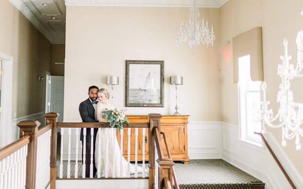 We wanted to really showcase an intimate Bridgerton themed elopement at a historic venue in Oshkosh, Wisconsin. We do believe that the themed elements tie in well to Bridgerton, and is along the lines of a more sexy, modern style for Daphne. The boots were handmade in England, and the headpiece was hand designed with 1980’s costume jewelry right on the same road where they filmed Bridgerton. With key elements in true Bridgerton style, we took the “Lady Whistleton letters” and made it a key element with gold sprinkled details to tie in the colors with her royal jewelry.
