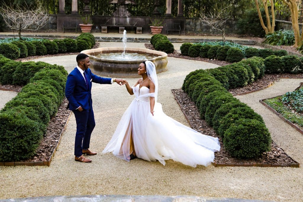 The Inspiration for this shoot came from the hit tv series Bridgerton. From the warm peach and pink tones, to the sweeping gardens, down to the Historic Venue. The Swan House is the perfect location for any event, from a small elopement, to a large event.