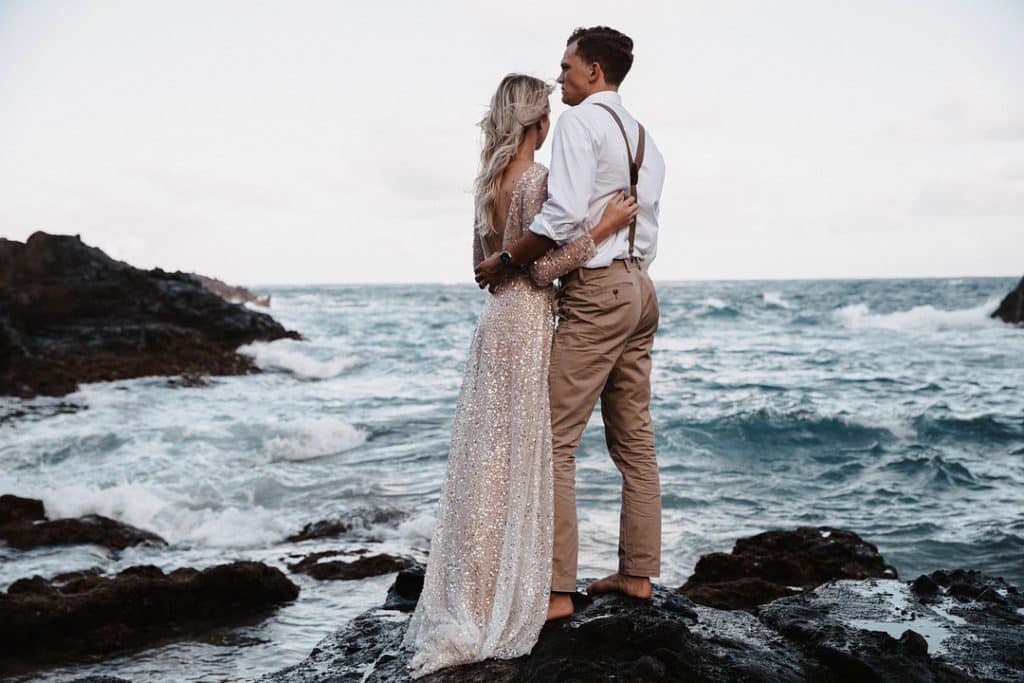 Holana Blowhole is an iconic location, used in movies such as 50 First Dates and From Here to Eternity. We thought this would be the perfect beach to showcase our beautiful couple. Not only is this beach situated in an intimate cove surrounded by rocks, but it’s secluded down a small hike. The water gets so blue, it’s unbelievable, and the drive up the coast is mesmerizing.
