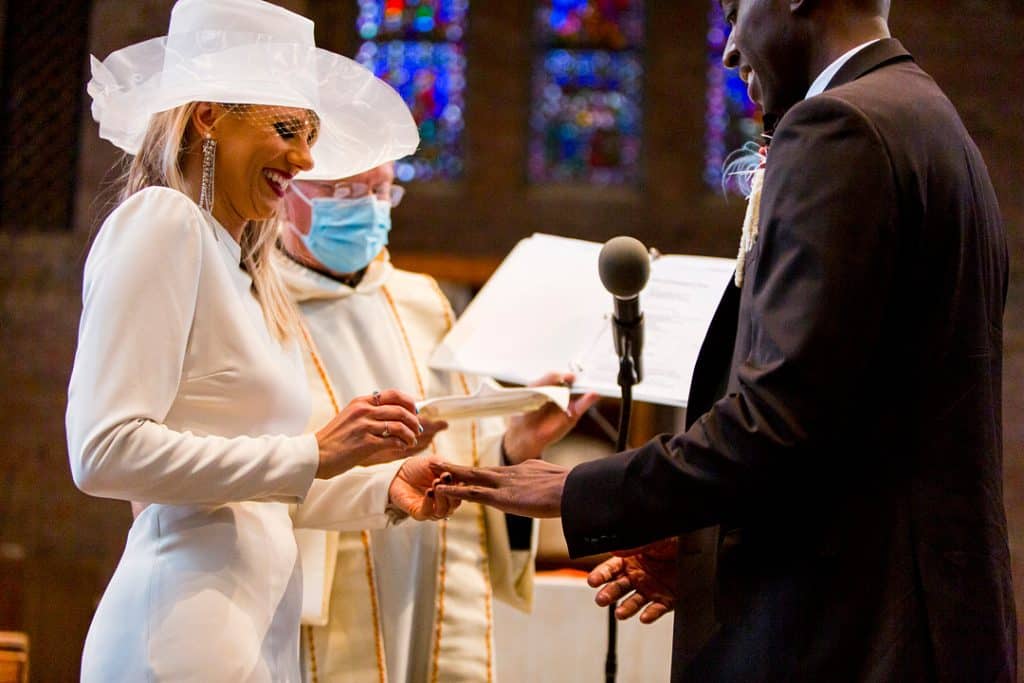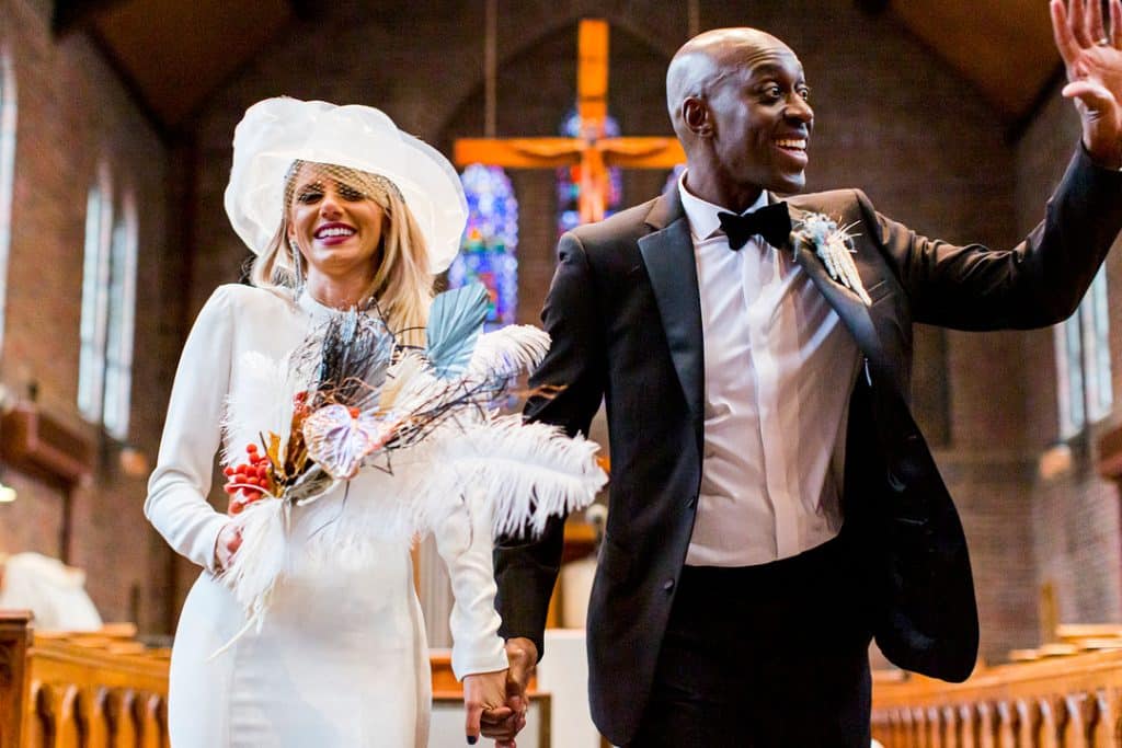 Like many couples in the Covid era, we knew we wanted to tie the knot sooner than later because of the uncertainty surrounding large event planning. My husband, Awenate, is a DC guy. He spent many years working in The White House and went to high school there so, although we live in Detroit where we met and fell in love, it was important for him to marry at his former high school, A Benedictine Monastery by a monk he is close with. Given his history in DC and mine from Detroit, we created an intimate mini-mony with details that reflected both of us (we are very different but it came together seamlessly). And did it all in less than a month of planning (somehow, some way)! A little Detroit style, a little DC. A little pop culture, a little politics — just like us! It was a mid-February wedding so our palette was generally cool with a warm hint, mostly shown in my floral arrangement and incredible cake — black, white, gray, navy, teal and coral.