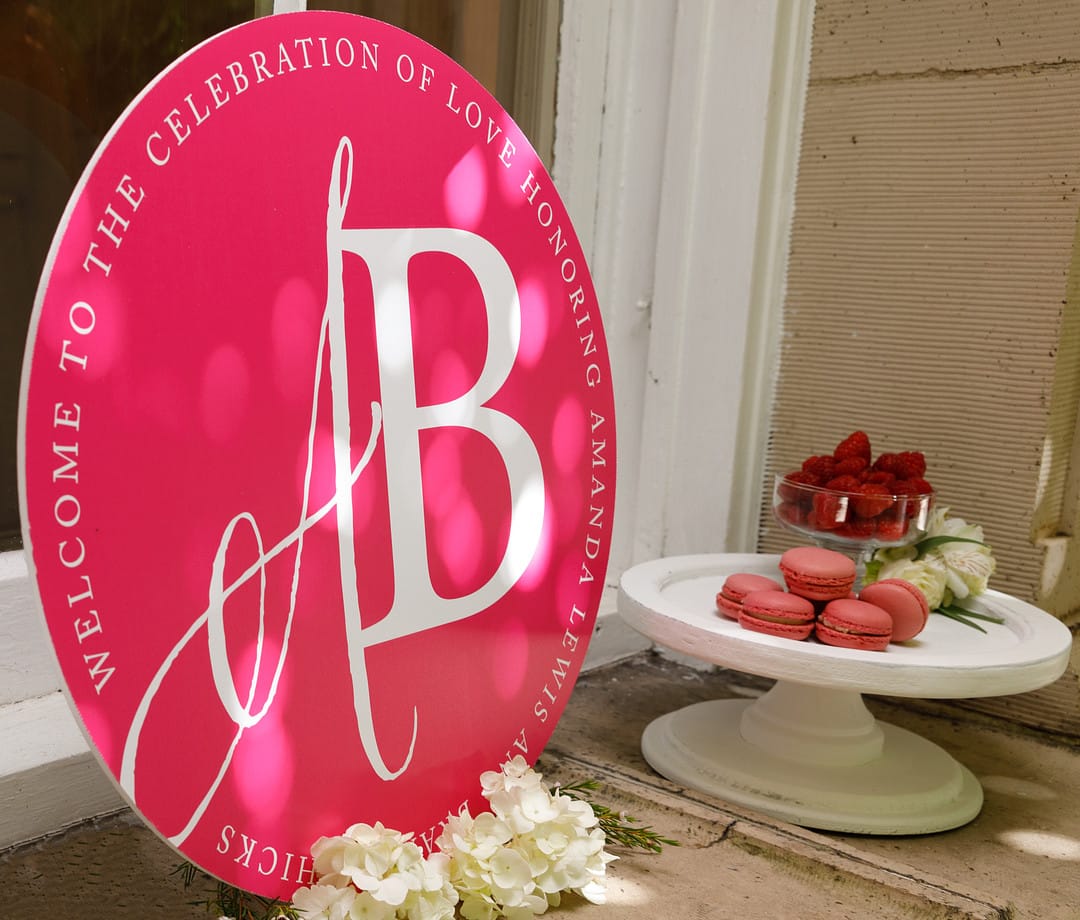 We designed the shoot with Chanel’s signature colors of blush pink, white, gold and black and for a pop of bold color we added hot pink. The Barbara Kavchok, elegant and couture, gown from Soliloquy Bridal set the overall mood for the shoot perfectly.