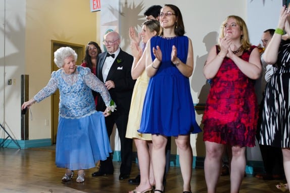 My grandparents have now been married for 64 years and their relationship has always been an inspiration to me. They still hold hands when they walk together. I wore my grandmother’s wedding ring during the ceremony and afterwards when I gave it back she told me there were “63 years of love in that ring.” So for the bouquet I presented it to my grandmother and talked a little but about how much of an inspiration they were and then the DJ played their wedding song: “Believe” by Perry Como.