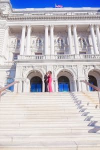 Selena & Joharri’s Stylish, Library of Congress Engagement Pictures in Washington, DC