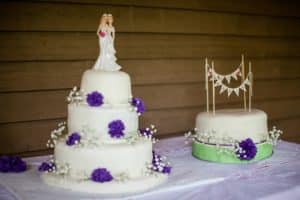 I really love the fun color choices in today’s wedding: purple & red! From the groom’s grandfather’s sword to cut the cake, to their spice favors, and quotes from their…