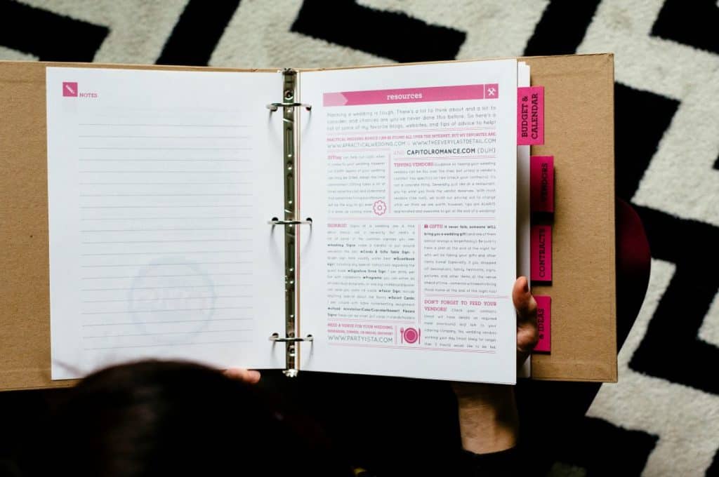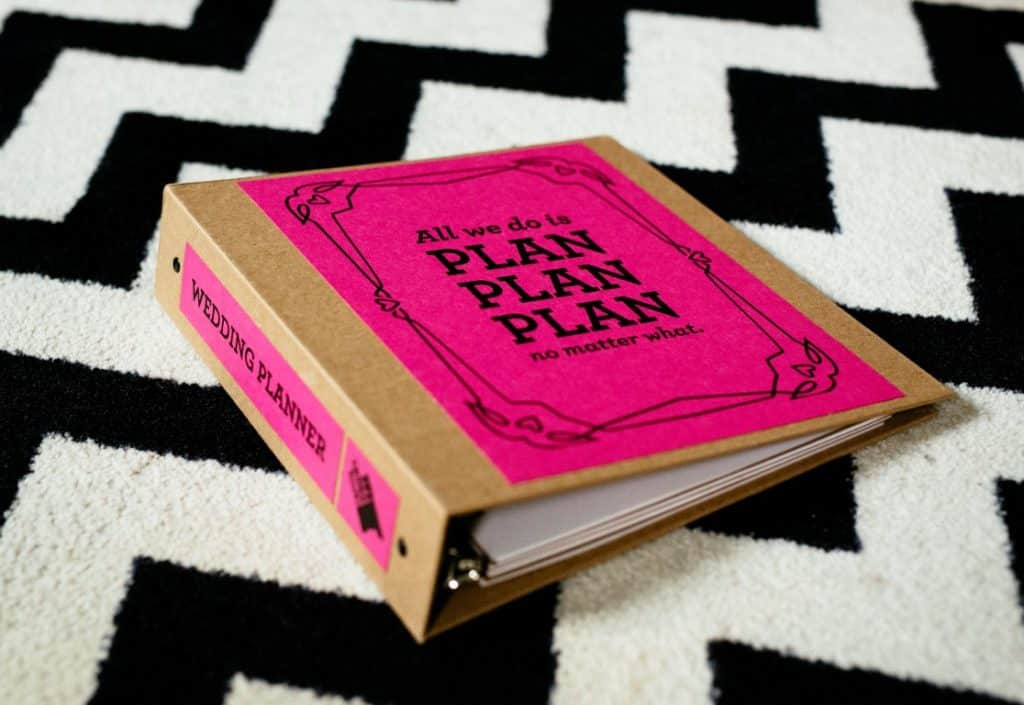 An awesome, custom 3-ring binder wedding planner to help keep you organized and get you started on your wedding planning journey. Cover available in Hot Pink, Purple & Teal.